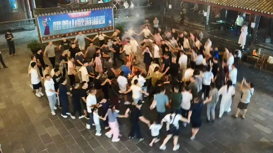 晚宴中,寨主更以土家族敬酒的独特习俗——高山流水敬贵宾——向开力全国最优秀的合作伙伴们表达特别的礼敬。篝火晚会则将“相融”氛围推至顶点。
