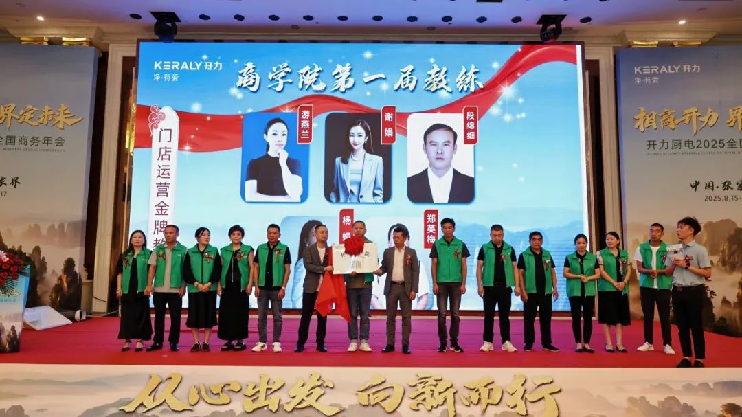 这不仅是开力集团对各位金牌教练专业能力的高度认可、对各位金牌教练无私分享精神的礼敬、也是开力集团与各位有志携手开力共创开力厨电事业发展新格局的郑重邀约。接下来,公司还将不断发掘、聘请更多优秀伙伴成为开力商学院金牌教练。经大会后研究决定,公司还增补开力长株潭运营中心门店赋能负责人周岳林、开力福州运营中心总经理汤盛忠、开力常德运营中心总经理丁智为金牌区域运营教练。