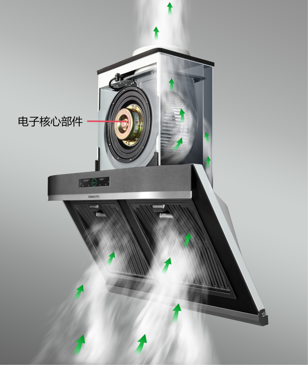 有了好的“心脏”,还需要一个好的“工作环境”。开力核心技术——油电分离技术,将烟机内部的油路和电路做了物理隔离。简单来说,就是让油烟中的油脂和电机“不见面”。这样做的好处很实际: