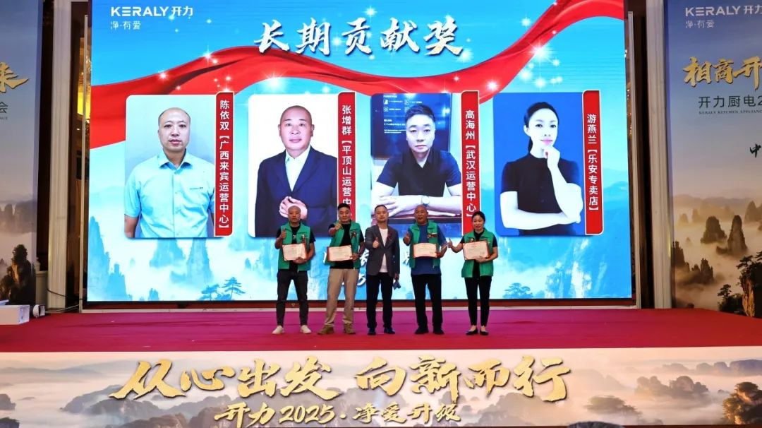 第一批由开力董事长亲手颁发的荣誉是开力长期贡献奖,表达开力对矢志不渝的忠诚与执着坚守的礼赞和致敬,获奖者10-16年耕耘开力事业不辍的开力优秀合作伙伴。荣获本次“长期贡献奖”的优秀伙伴是:开力来宾运营中心的陈依双、开力平顶山运营中心的张增群、开力武汉运营中心的高海洲、开力乐安专卖店的游燕兰。开力深知,有恒产者有恒心,开力绝不辜负每一位信任者、长期耕耘付出者。