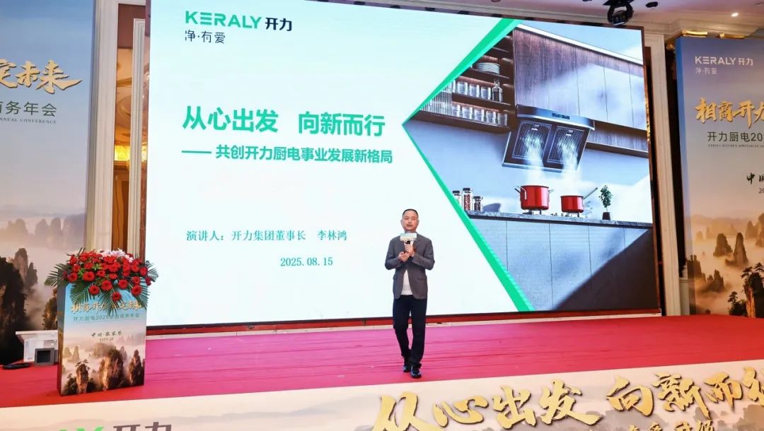 紧接着,与董事长主旨演讲一脉相承,着眼企业文化变革与营销创新落地,开力集团总裁李俊文先生以《为客户强大赋能 以价值感动用户——共创开力厨电事业发展新格局》为主题发表演讲。他结合亲身调研经历,直面合作伙伴痛点,从“赋能客户”与“感动用户”两大维度,明确开力未来服务与发展的核心路径,传递与伙伴共生、与用户共情的决心。